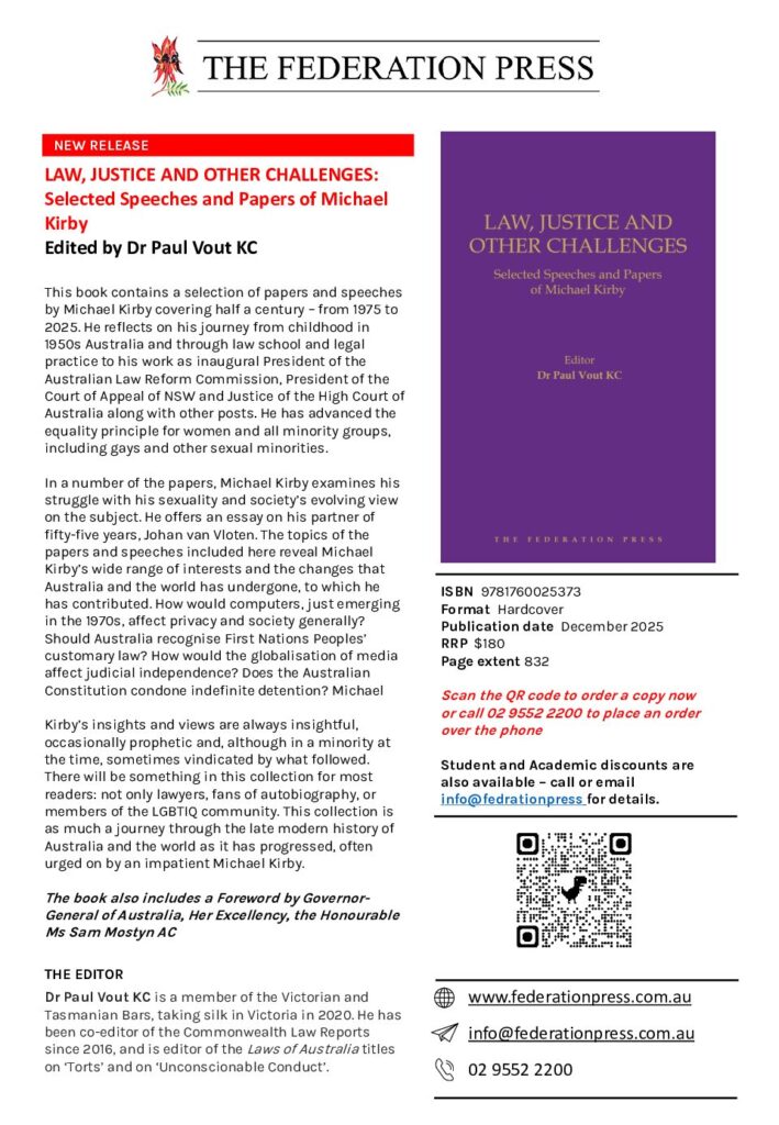 LAW, JUSTICE AND OTHER CHALLENGES: Selected Speeches and Papers of Michael Kirby